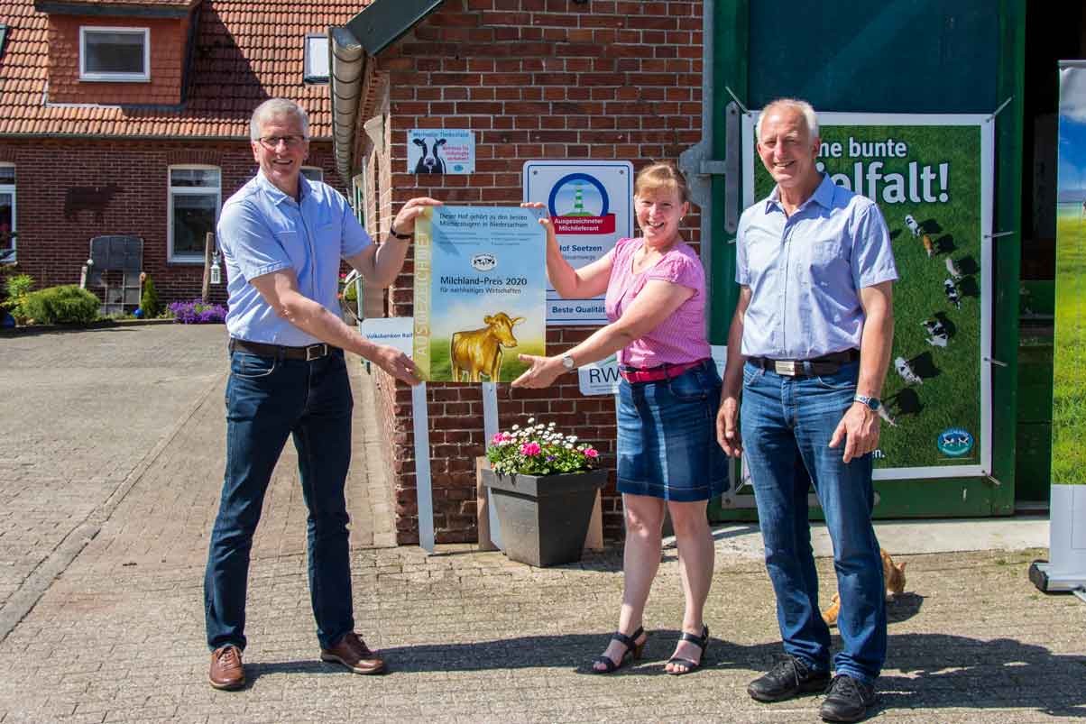Familie Seetzen bewirtschaftet in Varel-Neuenwege (Landkreis Friesland) einen 92 Hektar großen Betrieb, davon 49 Hektar Dauergrünland. Auf dem Hof werden 90 Milchkühe sowie 62 weibliche Nachzuchttiere gehalten. Die Herde erbringt eine gute Milchleistung von rund 9.720 Kilogramm pro Kuh und Jahr bei einem Fettgehalt von 4,38 Prozent und einem Eiweißgehalt von 3,45 Prozent. Die Milch wird an die Molkerei Ammerland eG geliefert.